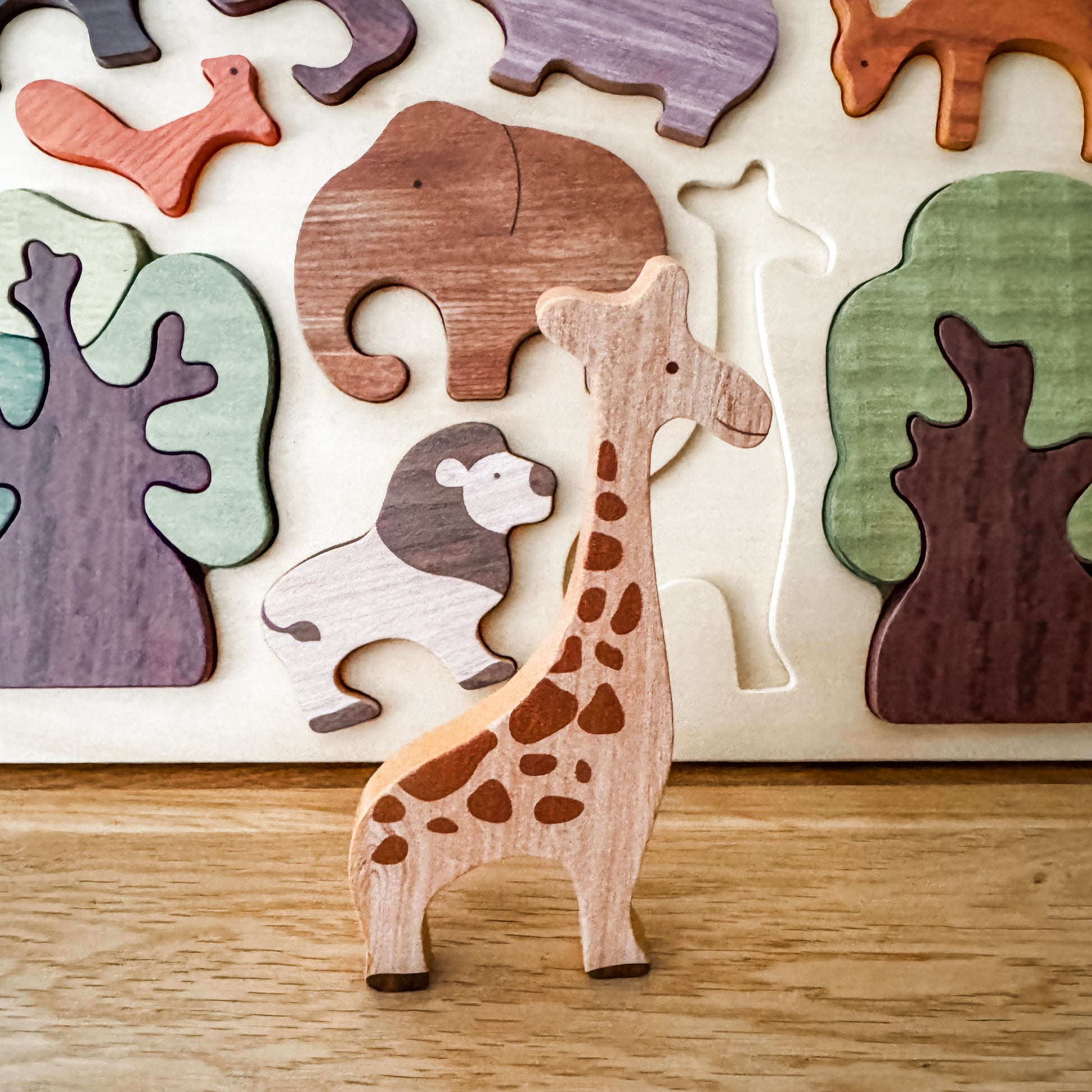 Our Wooden Forest Animal Travel Puzzle is a versatile, educational toy designed to delight and engage young minds while accompanying them on adventures both at home and on the go. Crafted from natural linden wood, this eco-friendly puzzle set features 15 durable, well-polished pieces that depict charming forest animals and pine trees. The thoughtfully designed pieces are perfectly sized for little hands, making it easy for preschoolers to grasp, manipulate, and explore.